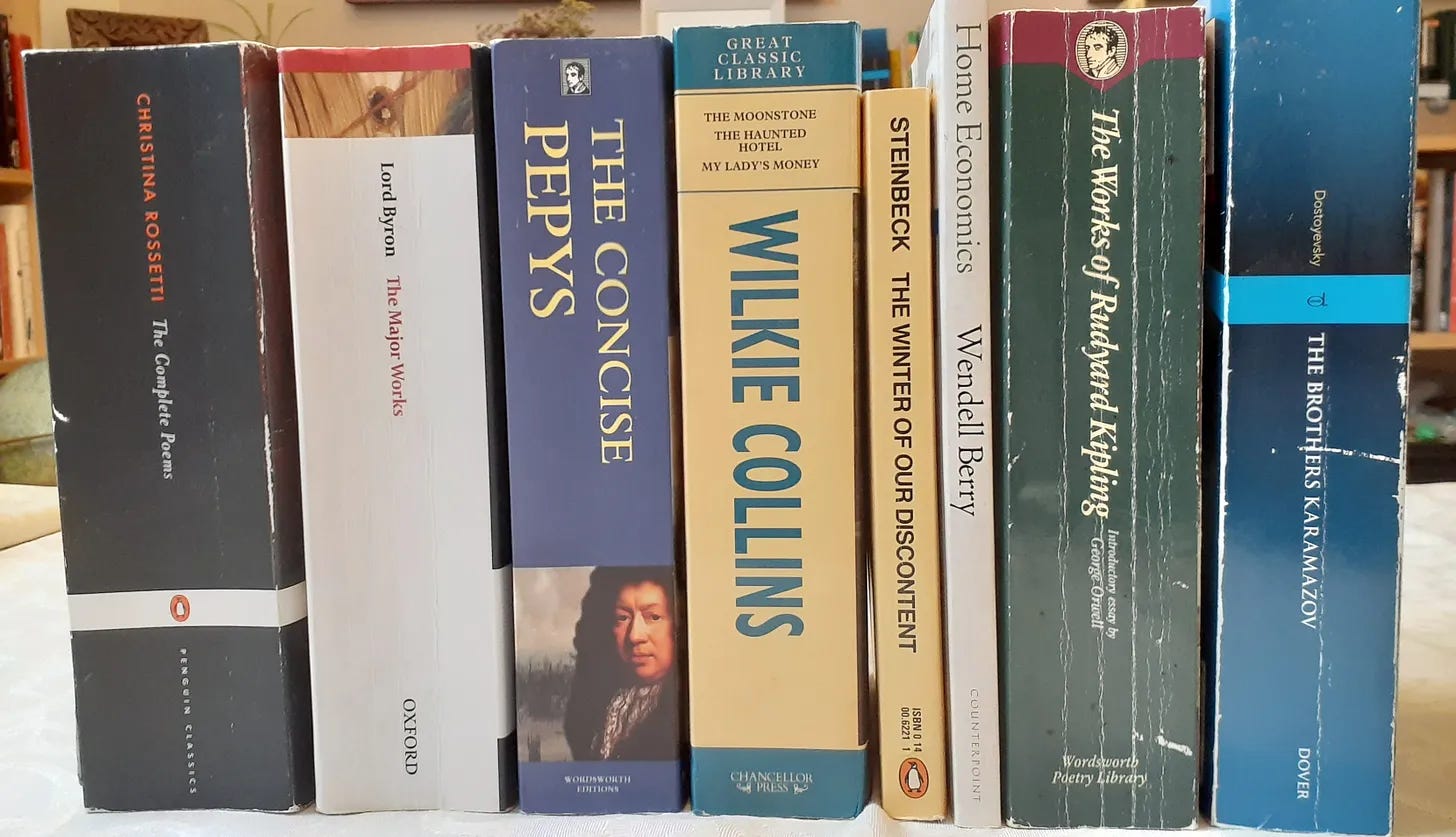 As I picked up a copy of Brothers Karmazov, I noted that it was marked with the lowest price tag ($2.49). The same was true of the collected works of Rudyard Kipling, Wilkie Collins, and many other classics. I realized that the availability and assigned value of books lay in the hands of teenage employees, who clearly viewed these works as worthless. I promptly bought a stack, saving them from possible careless discard.