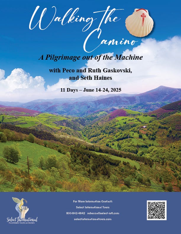 My husband Peco and I will be leading an eleven-day pilgrimage on the Camino trail in Spain next year, from June 14-24, 2025. Joining us, as co-leader, will be writer/photographer Seth Haines from The Examine. Space is limited so reserve your spot now :) You can read all about it here or view the brochure here. This trip is open to everyone, irrespective of religion or background.