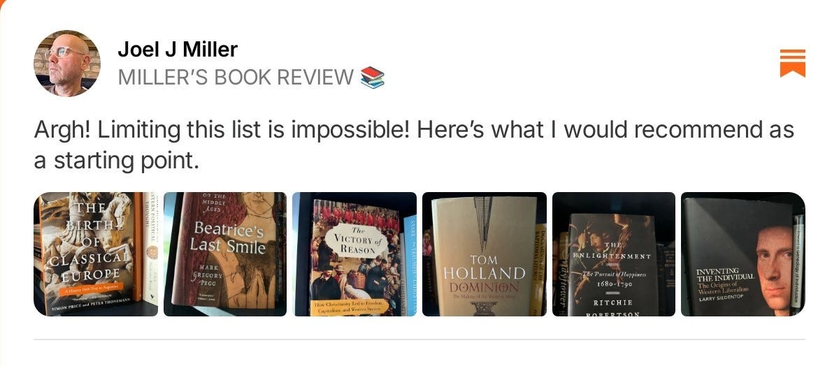 For today’s post, we invited Substack writers and readers to contribute their recommendations for trustworthy books that tell the history of the West and the world more generally2.